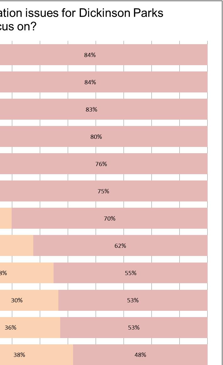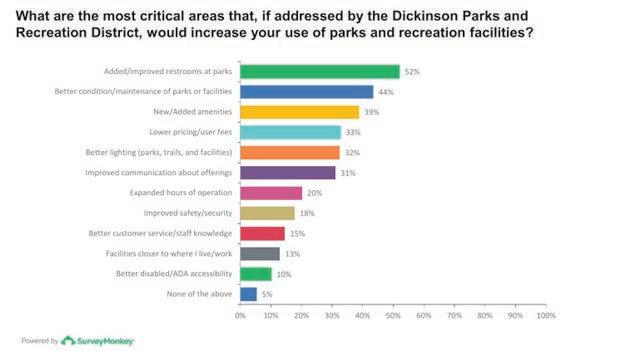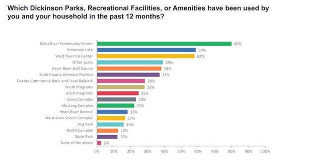 Public comments taken during the City of Dickinson Direction 2050 plan included requests for cleaning up Patterson Lake, more trails, more trees, more attention to adult recreation sports, and a designated sledding area.