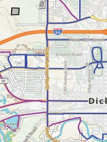 8. Work with the City of Dickinson and Stark County to fund a trail network along the Heart River with connections to Patterson Lake and address sidewalk connectivity.