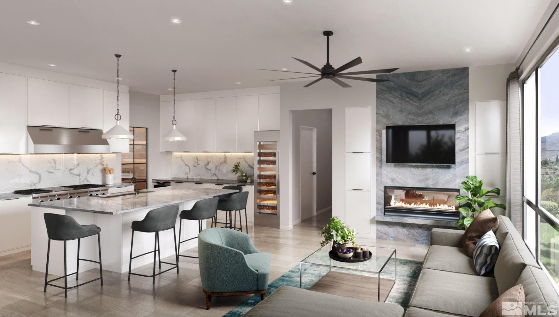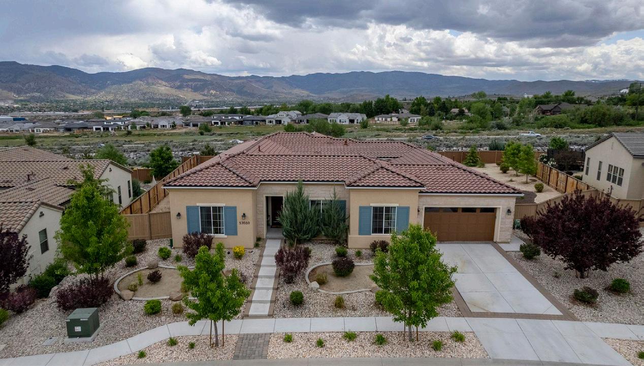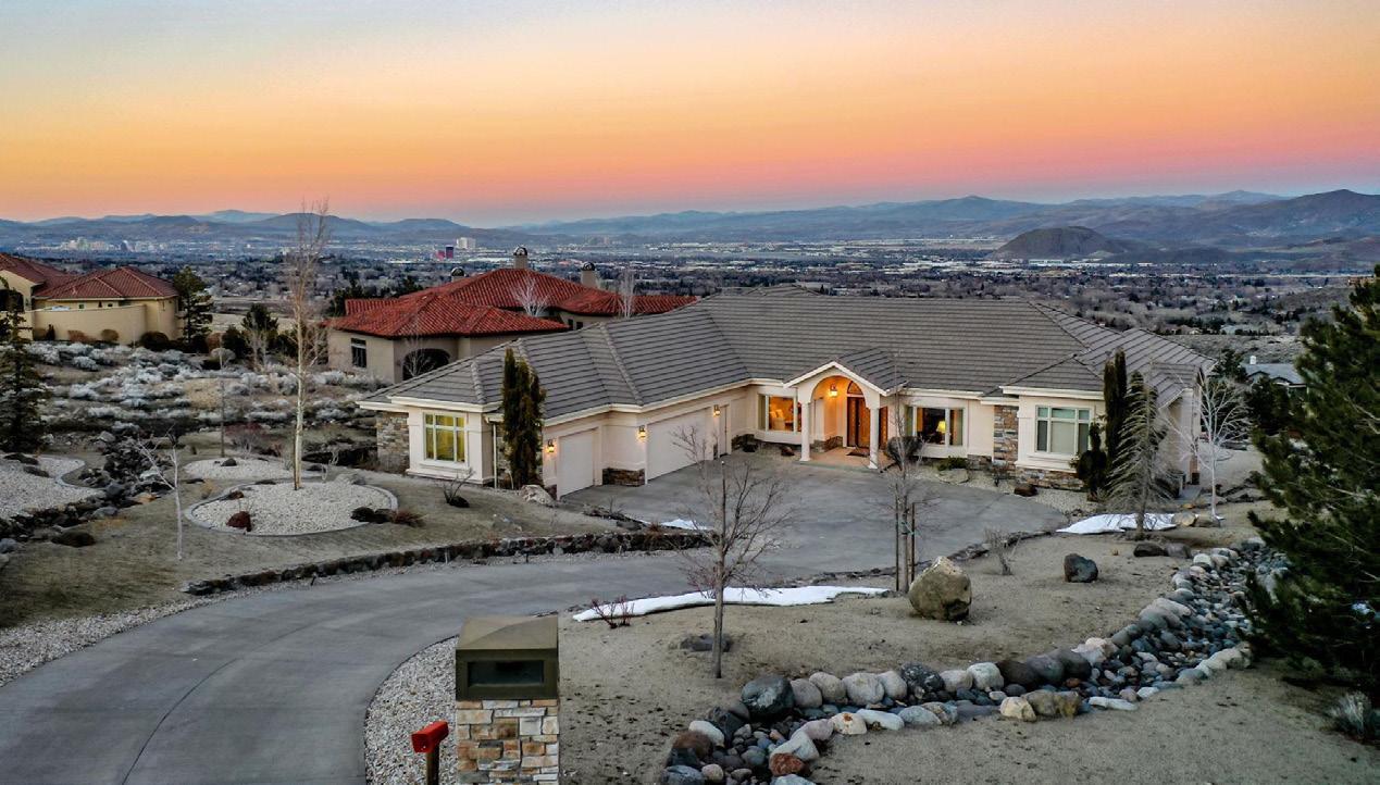 Introducing a new custom home in the gated community of Eaglesnest at Caughlin Ranch. The large Lowen windows throughout the home allow natural light to flow into every room; effortlessly integrating indoor and outdoor living. Enjoy sweeping panoramic views of the city and mountains. Soak in the sunsets from the comfort of your private terrace with an outdoor fireplace and TV. This mountain modern home offers the perfect balance of luxury and comfort.