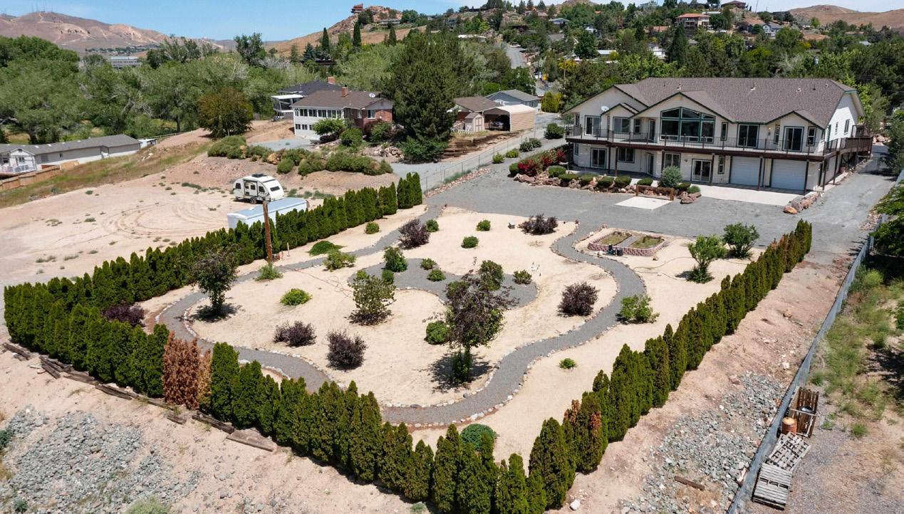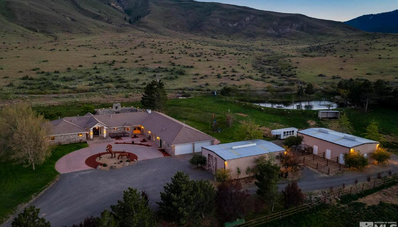 Sit on the patio and take in the views across Washoe Valley - absolutely beautiful! 1901 Priority Ophir Creek water rights feed a series of 5 ponds on the property year round. With a master gardener at the helm the landscape is magical with mature trees and carefully curated plantings for seasonal color. There is a 1360s.f., 2 story, 1 bedroom/bath guest cottage at the back of the property as well as a detached garage/ storage barn. 4145s.f. is only the upstairs living area of main home, lower level has 3441s.f.with a rec room and flexible garage space for as many as 6 to 8 cars. There are two gated entrances.