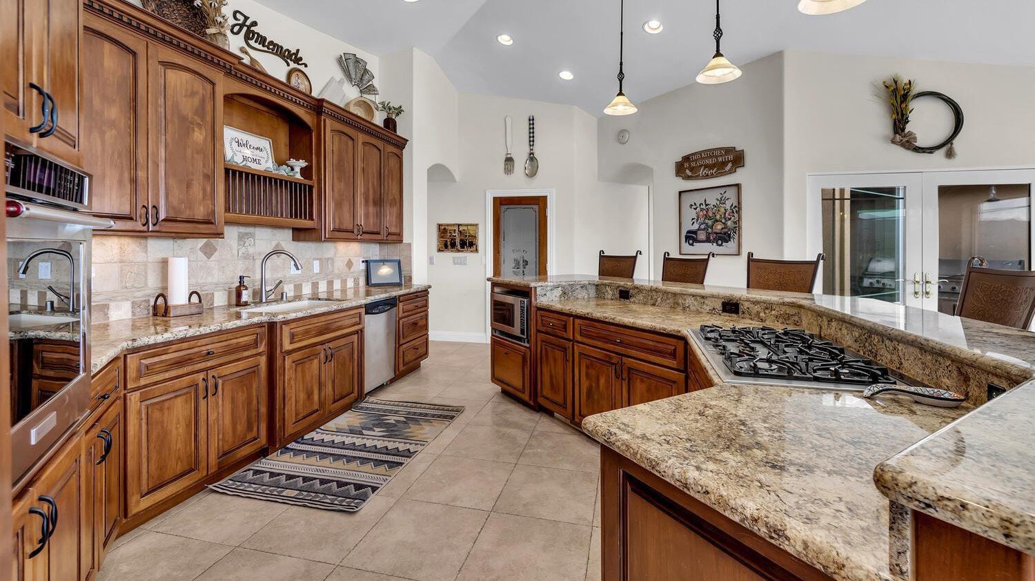 This is the rare opportunity to own a private retreat consisting of 6,600 sq ft of updated ranch-style living space adjacent to BLM land with 6 acre/feet fenced water right. The footprint of this 8-bedroom, 9-bath home has been thoughtfully divided into four zones. The eastern-facing sizable owner’s suite is a wonderful hideout with a fireplace, two en-suite marble bathrooms, two walk-in closets, and two additional flex spaces for an office and workout area. The kids’ wing comes with new wood-laminate floors and is ready for action.