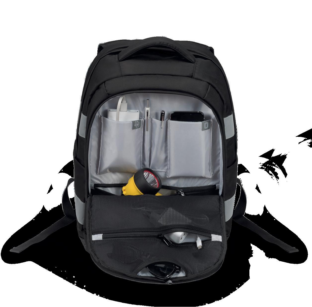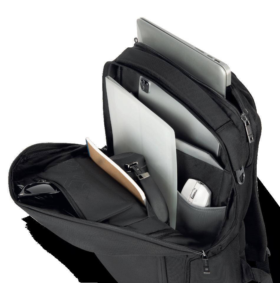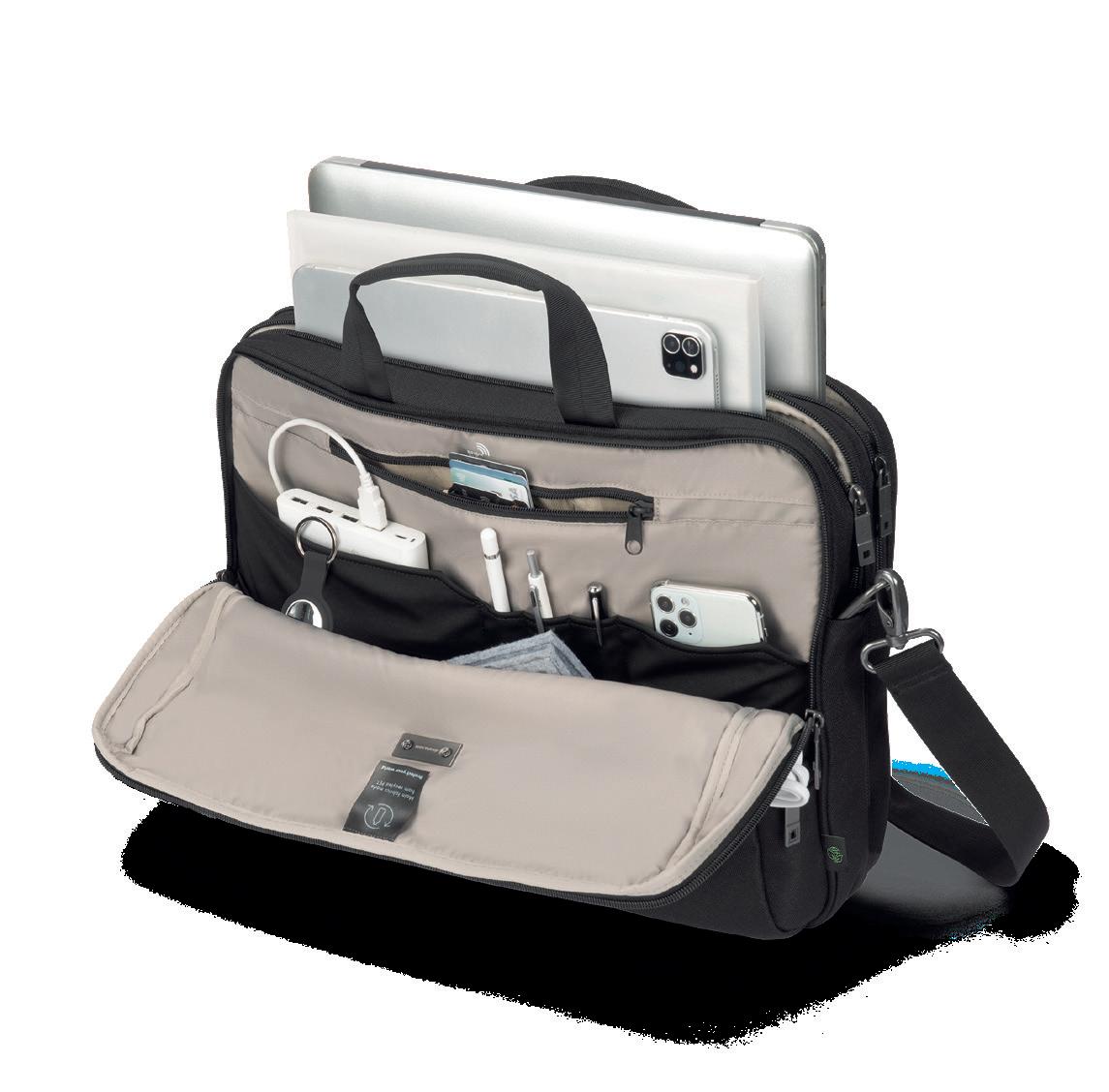 – Weitere Fächer bieten Platz für Zubehör, Dokumente oder ein zusätzliches Notebook/Tablet