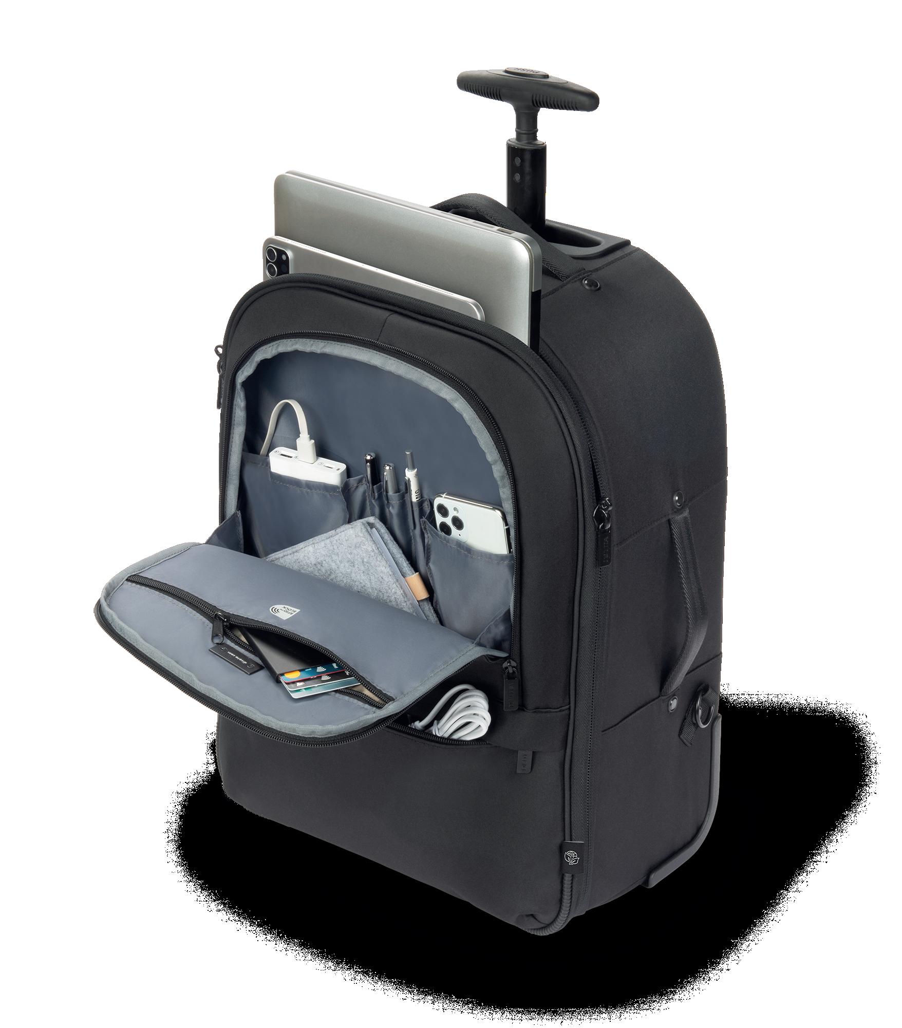 „Ziehen statt Tragen“ lautet die Devise beim Trolley, der im Fachjargon bei DICOTA deshalb kurz „Roller“ genannt wird. Er bietet maximalen Komfort für private und geschäftliche Reisen. Dank der durchdachten Innenausstattung um dem abgetrennten und gepolsterten Laptopfach lassen sich alle Gegenstände korrekt und sicher verstauen. Wichtig bei der Wahl eines Trolleys ist die Qualität der Räder und des Teleskopgriffs. Bei DICOTA sind diese Komponenten übrigens einfach austauschbar – wie beim Auto-Reifenwechsel.