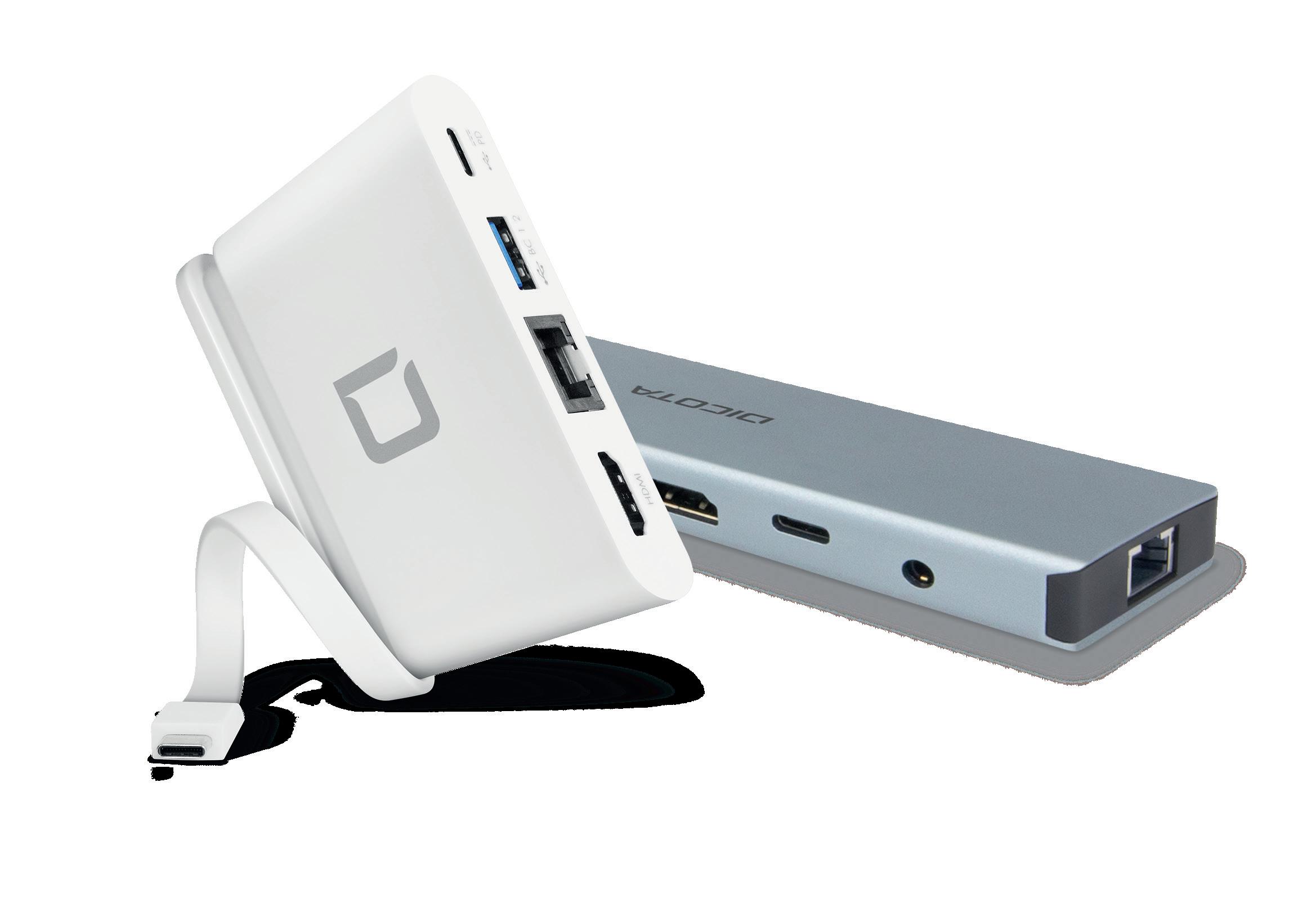 Wir sind ständig unterwegs und wollen darauf vorbereitet sein, in einer Reihe verschiedener Umgebungen zu arbeiten, aus der Ferne zu präsentieren, Besprechungen abzuhalten oder wichtige Aufgaben an Bord eines Flugzeugs oder Zugs zu erledigen. DICOTAs Docking Stationen und Hubs wurden für optimales, bequemes Arbeiten mit modernen Laptops entwickelt. Mit diesen Produkten können Nutzer die Möglichkeiten ihrer mobilen Geräte – wie Laptops und Tablets – erweitern und eine grosse Bandbreite an Peripheriegeräten anschliessen.