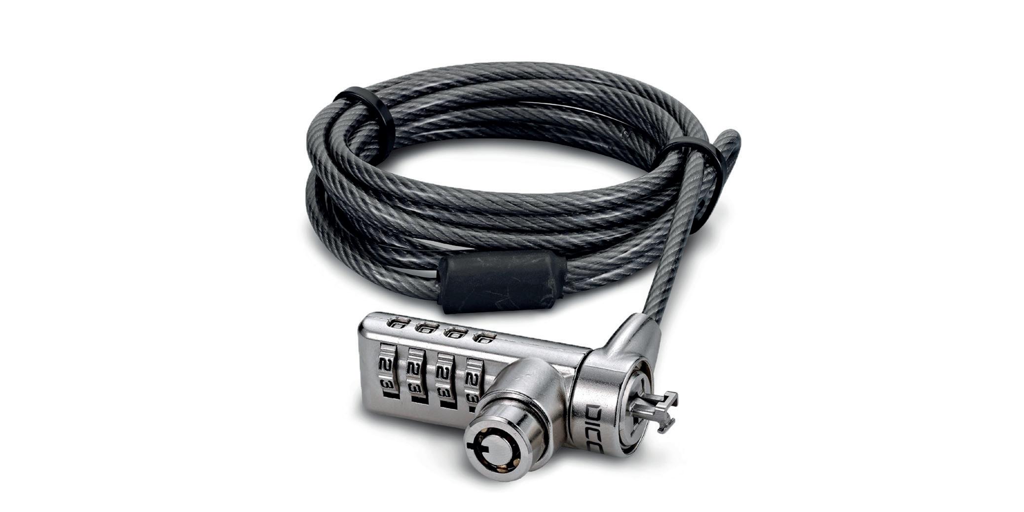 Wanneer u verschillende apparaten gebruikt, moet u vaak verschillende sloten gebruiken, een situatie waarvoor de universele oplossingen van DICOTA een oplossing bieden. U hoeft niet te weten wie welk slot nodig heeft, alleen hoeveel sloten u nodig hebt. Als de notebooks worden vervangen door nieuwe apparaten, kunnen de sloten nog steeds worden gebruikt, waardoor ze een langetermijnoplossing vormen. De universele veiligheidskabelsloten zijn verkrijgbaar met sleutel en combinatiesystemen en omvatten 3 verwisselbare slotkoppen (T-Lock, Nano en Wedge).