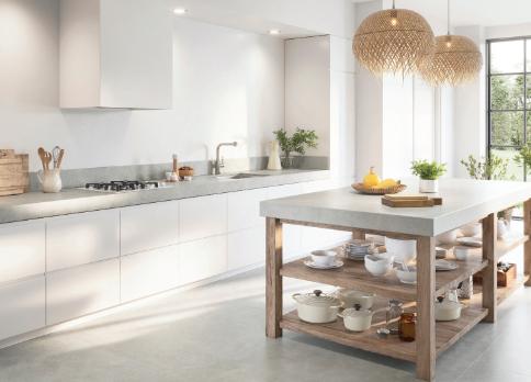 En espacios abiertos, delimitar la zonade cocina concerámica efecto piedra ycombinarla concerámica efecto maderacrea una transición cálida y elegante. Para uienesprefieren unestilo másurbano, las baldosasefecto hormigónpulido evocanundiseño industrial contemporáneo.Y si sebusca fusionarlacalidezdelamaderaconlasobriedaddelgris, lossuelosefectomaderagrissonperfectosparaestilosescandinavosor sticosmodernos.