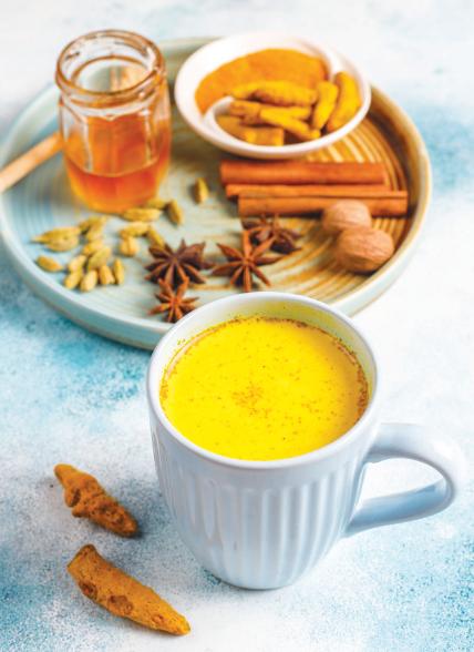 1 tazadelechevegetal(almendraococo). cucharaditadecúrcuma, decucharaditadecanela.