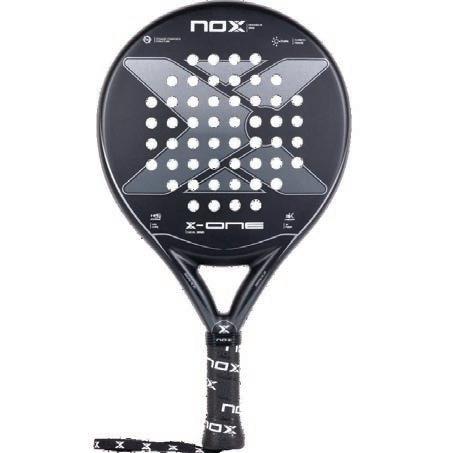 La paleta de pádel Nox X-ONE apuesta por la forma redonda y suma un núcleo HR3 junto a caras de fibra de vidrio 3K, dando como resultado un tacto medio-blando, que permite el agarre firme y cómodo para tener un excelente control y una buena salida de bola.