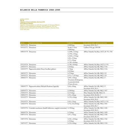 07/12/1574 Donazione 21/01/1575 Elemosine 21/01/1575 Pagamento artista (Teseo Cavallari, pittore) 18/03/1575 Elemosine 31/03/1575 Elemosine 24/04/1575 Elemosine