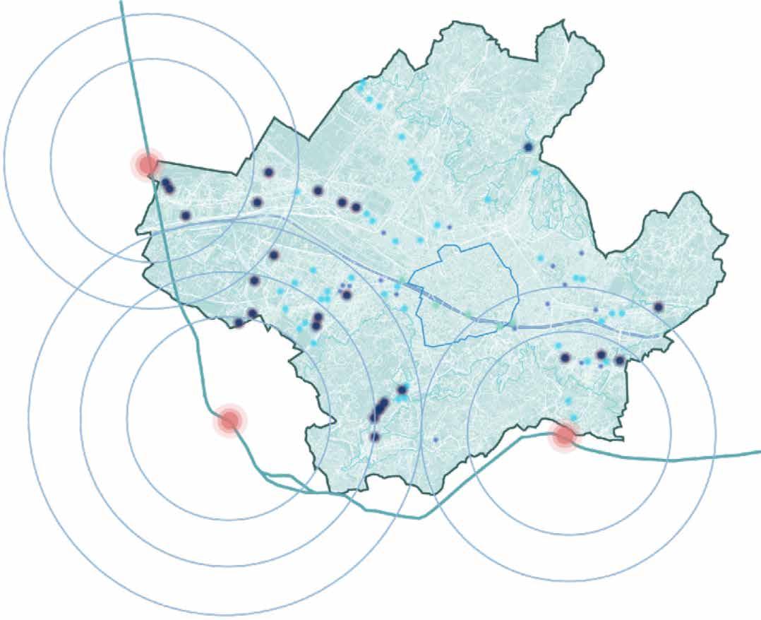 Si è pertanto ipotizzato un possibile sistema ibrido fluviale di trasporto persone e logistico, basato su due stazioni di testa d’interscambio periferiche e due tappe intermedie di penetrazione urbana.