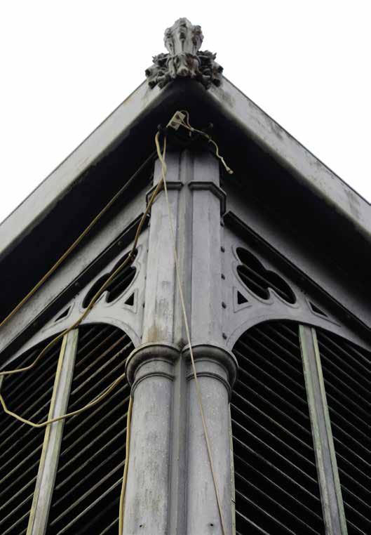 Figg. 135-136-137 Mercato succursale di Sant’Ambrogio, dettagli della struttura metallica col giglio fiorentino e dei montanti cavi in ferro (Gianluca Dellanoce, 2018).