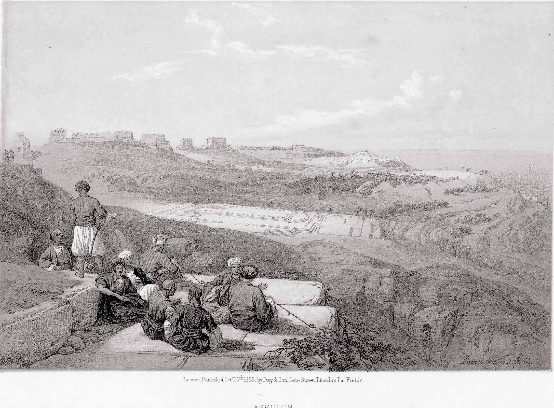 Dipinto della veduta di Ashkelon da nord | Painting of Ashkelon viewed from the north. (David Roberts in 1839)