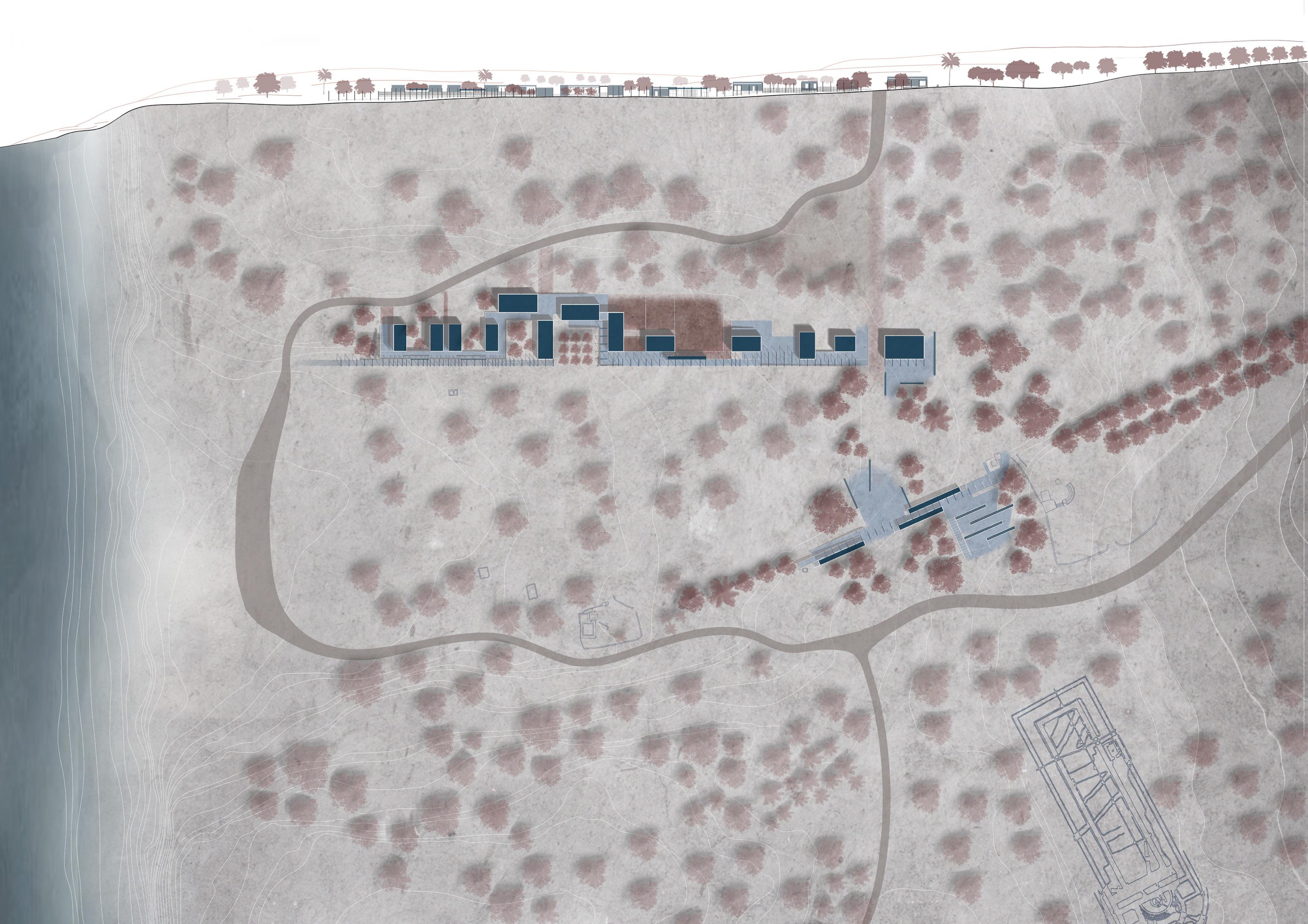 The process of every architectural project, regardless of the figurative choices and formal outcomes of the same, is determined by the “compositional” interweaving whereby a more or less articulated programme of functional requirements (understood extensively from the practical dimension to the symbolic one) is placed in relation to the specificity of a ‘place’ that qualifies itself through its ability to fix in its nature the legacy, real and/or ideal, of the events of human history. Sara Masi’s thesis project is no exception. In the archaeological area of Ashkelon, only a few monumental remains have been systematically excavated and are currently visible in the few surviving parts (essentially only the Roman basilica and the city wall ring). Most of the ancient urban space urban space is still poorly investigated and only partially known for individual fragments The entire area is now included in a large park on the edge of modern Ashkelon, perhaps better equipped to host tourists’ picnics and/or events than to enhance the historical heritage of the place. Nor is there an adequate museum facility in the city, since, as far as I know, the public display of local archaeological finds is limited to a few showcases located in the atrium of the Ashkelon Academic College, the local university campus. A clear programmatic choice of the project is derived from such premises. The intervention within the ancient city could not be conceived merely as an efficient logistical structure to serve the excavation activity, a ‘citadel’ for scholars and archaeologists, perhaps a little removed from the flow of tourism from campers and bathers. An architectural project should, on the contrary, hold together the different needs postulated by the ‘place’: the need to study its history (through archaeological investigation from the excavation to the stage of interpretative analysis), the need to show its history (through public display of the find from its study phase), and finally the need to use its history positively (through the flexibility of a system capable of conveying interactions of mutual benefit between different ways of using the area). The figurative key able to compose these complexities (“hold together” in compositional terms) is concealed in the concept of “place” that not only includes but also transcends the physical datum.