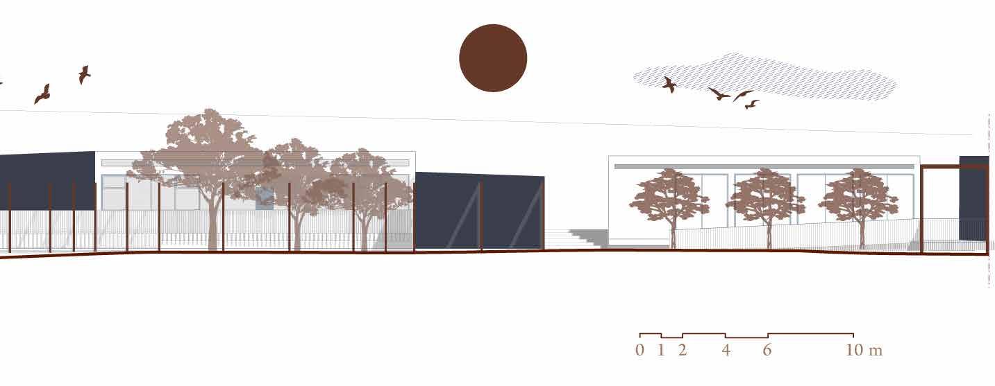 In order to cope with the hot climate, a system of ‘sails’ was designed as a cover in some parts of the steel stoa, allowing for shelter with the creation of some shaded areas. A system with home automation control that ensures easy control depending on the sunshine.