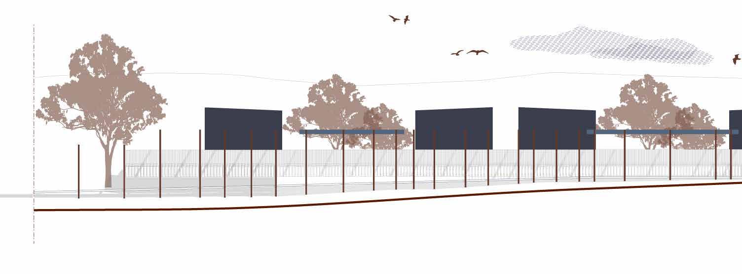 Il sito di progetto quindi ha fortemente influenzato la scelta tecnologica, facendola vertere verso strutture non invasive e mobili. Reversibilità e temporaneità sono i principi cardini progettuali che hanno portato alla determinazione di un’architettura effimera , modulare, in legno e acciaio elevata su fondazioni puntiformi a vite per un impatto minimo con il terreno.