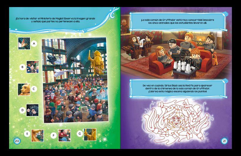 Cada libro incluye: más de 75 actividades para resolver y divertirte, 2 minifi uras LEGO® y otras piezas.