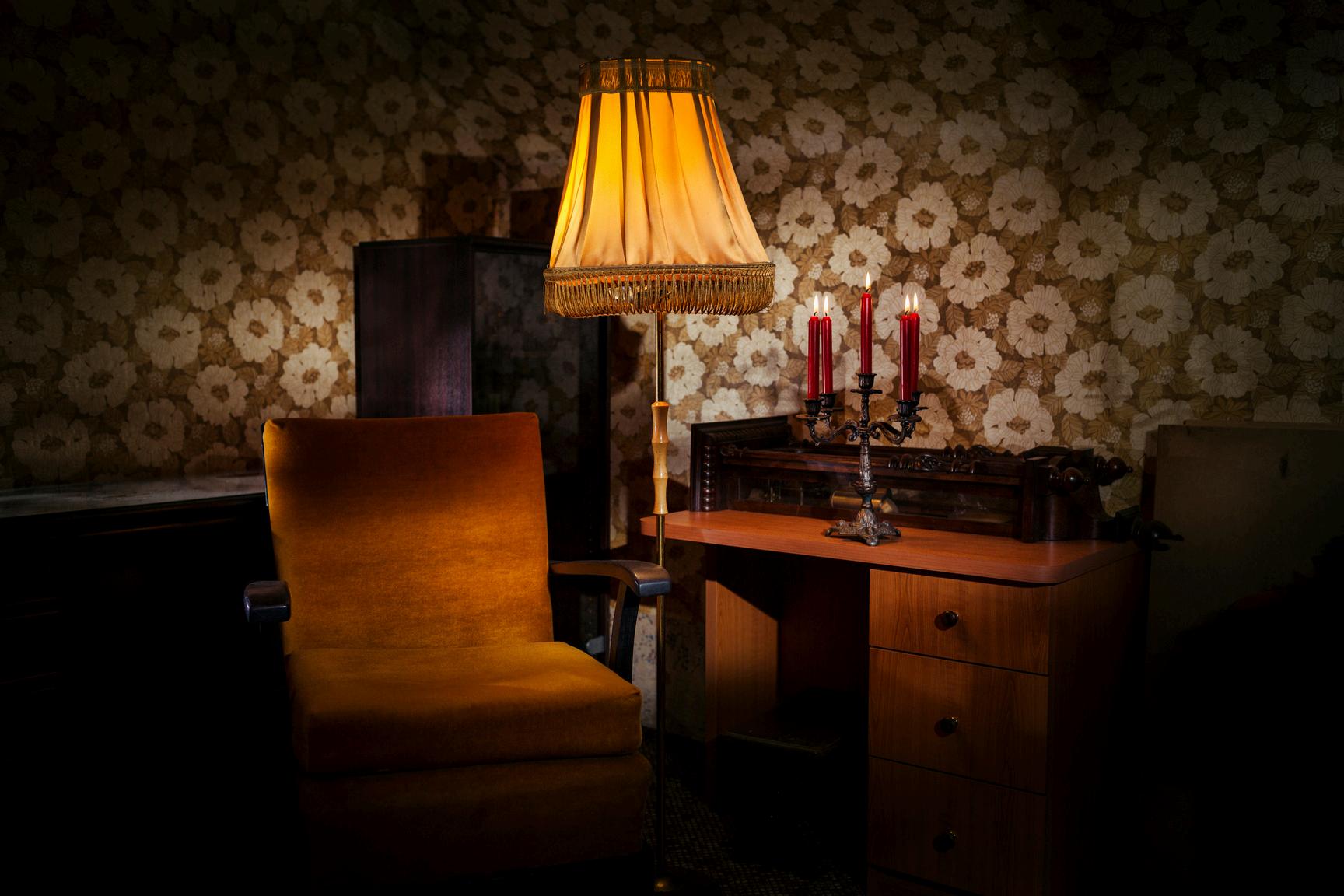 Si lo que deseas es mostrar un toque de misterio, te sugiero que busques piezas que den un mensaje de terror o de suspenso. Es cuestión de ser un poco creativos y experimentar con artefactos antiguos como una máquina de escribir antigua, un teléfono, un fonógrafo o una silla mecedora.