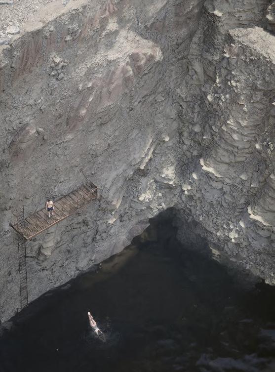 Another point of human pleasure mixed with rehabilitation is the intervention of a quarry swimming hole. A well understood practice of quarry rehabilitation is to fill them with water as this avoids any toxic material resurfacing. The architectural intervention becomes subtle through the jumping platform and the informal gravel paths that lead to it.