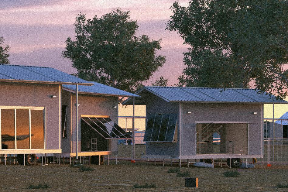 The self-sustaining camp comprises of living huts and the facilities that enable self sustenance such as electricity generation and sewerage treatment.