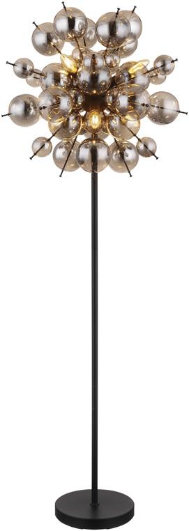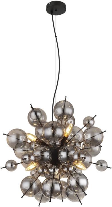 LEUCHTENSERIE, Metall schwarz matt, Rauchglas, ohne Leuchtmittel. Abgebildete Leuchtmittel nur Dekoration. Globo
