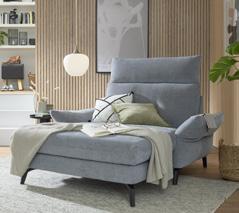 Großzügige Wohnlandschaft, Bezug Stoff Unica steel, Metallfuß alufarbig, best. aus 1-Sitzer Kombielement mit Anbauhocker rechts, 2,5-Sitzer Zwischenelement, Canape Armteil links. Rücken Spannstoff. Stellmaß ca. 168x305x200cm. Kissen und Funktionen gegen Mehrpreis erhältlich. 14760326