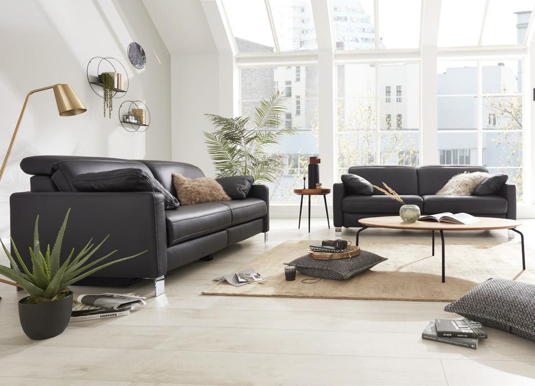 Hochwertige Polstergarnitur, Bezug Leder, Schenkelmaß: 190x287 cm. 23850292 | Hocker, 120x65 cm wahlweise mit Stauraum 499.-