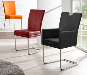 Esstisch, Platte Wildnussbaum MASSIV, geölt, ca. 100x200 cm. Schwingstuhl, Bezug Leder Napoli, Gestell Flachstahl, Edelstahl gebürstet, diverse Bezüge möglich. 329.Einzelbank, Bezug graphit, Kufengestell Edelstahl gebürstet, Breite ca. 200 cm, 1199.- 12730706/1042/1041