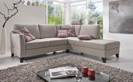Eckkombination, ca. 207x301x207 cm. Inkl. Kopfteilverstellung. Viele Stoff- und Lederfarben erhältlich.