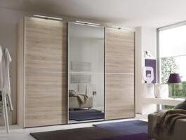 Schwebetürenschrank, Front Dekor, mitte Spiegel, BxHxT ca 249x222x68 cm. 742307350000