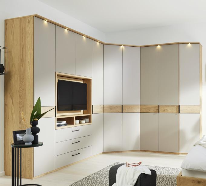 Individuell planbares Schranksystem, Ausführung Echtholzfurnier/Lack, TV-Fach und Schubkästen optional, Eckkombination ca. 270x222 cm, Höhe ca. 229 cm. 7051021704 3899.-