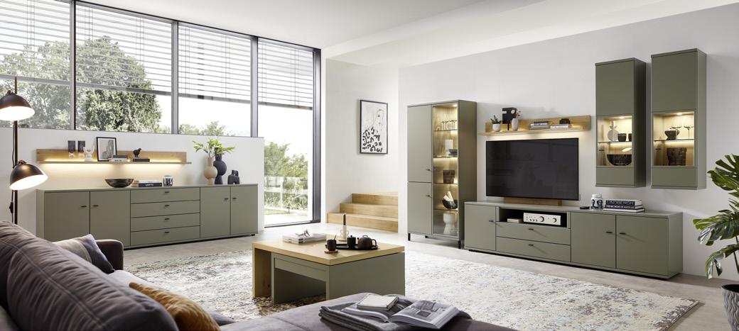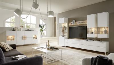 Wohnwand und Beimöbel in hochwertiger Lackausführung, alle Elemente einzeln erhältlich. Beleuchtung optional 73370000