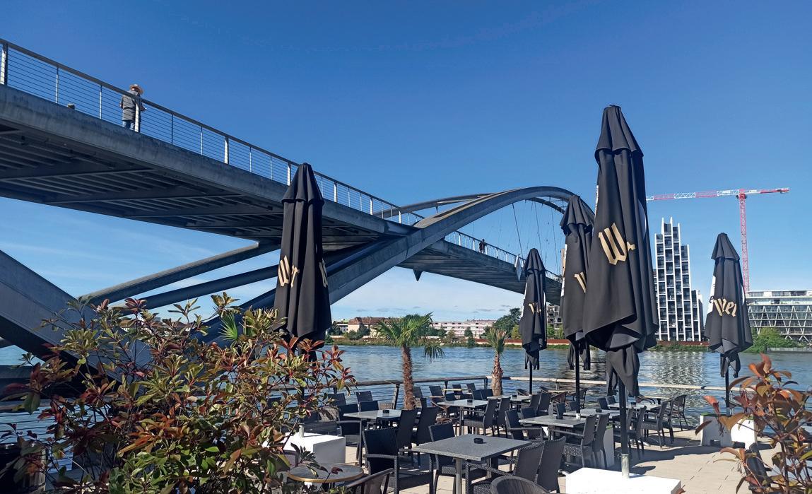 rung des Rheinparks in Weil am Rhein und den umgestalteten Uferbereichen in Huningue wurden beidseits der Dreiländerbrücke neue Freiräume direkt am Wasser gescha en – ideal für Erholung und Naturgenuss.