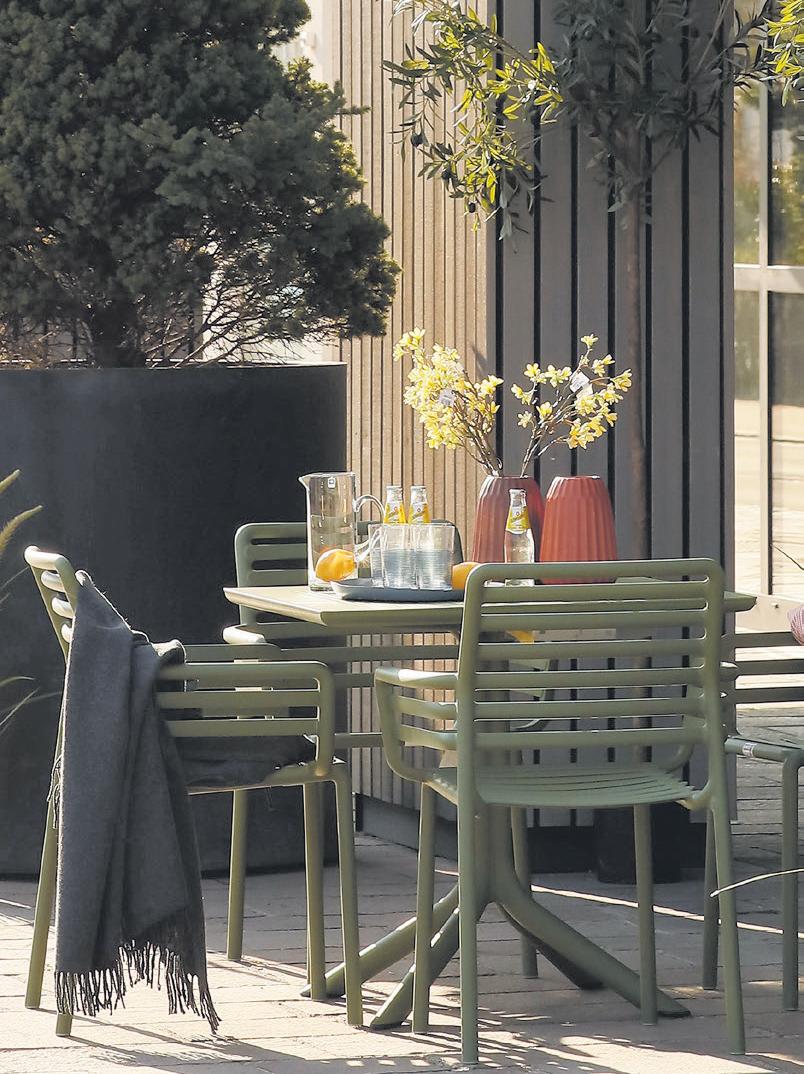 Die aktuellen Trends? Trotz ihrer Witterungsbeständigkeit können es die gezeigten Gartenmöbel in Optik und Haptik mit der Inneneinrichtung aufnehmen Weiche Polster und Bezüge, helle Farben und natürliche Materialien wie Teakholz oder Naturstein geben den Ton an Auch Seilgeflecht,