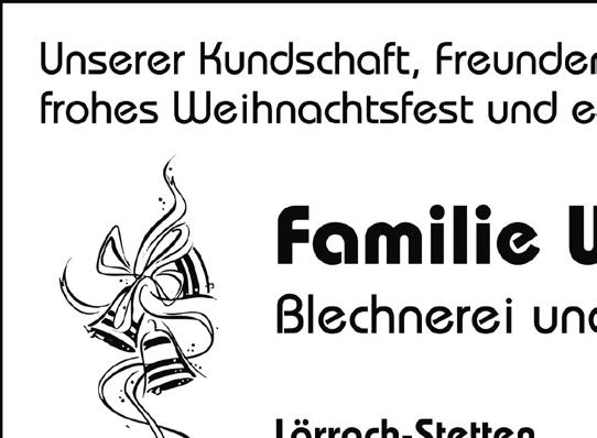 SONDERVERÖFFENTLICHUNG Samstag, 24. Dezember2022 Frohe Weihnachten und einen guten Rutsch ins neue Jahr... ...wünschen Ihnen und IhrenFamilien die Inserenten dieser Beilage. www.verlagshaus-jaumann.de