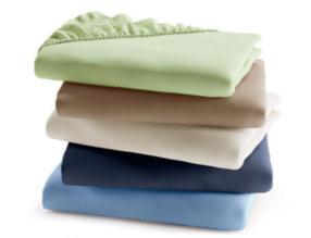 Jersey-Spannbetttuch mit Elasthan 96 % Baumwolle, 4 % Elasthan. Geeignet für Matratzenhöhen bis 40 cm. 100 x 200 cm.