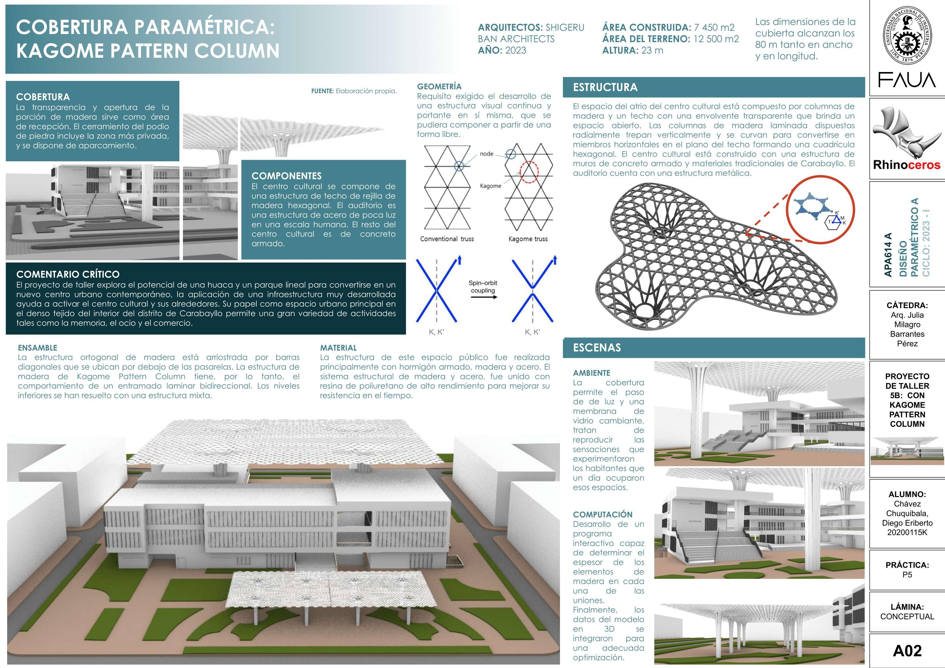C O N T E N I D O 6 PRÁCTICA N° P1 - 1 FICHA DE LECTURA | DISEÑO PARAMÉTRICO Y DESARROLLO CREATIVO 15 - 17 PRÁCTICA N° P1 - 2 DISEÑO Y MODELADO | IGLESIA DE LA ATLÁNTIDA 18 - 22 PRÁCTICA N° P1 - 3 MODELADO Y MATERIALES | IGLESIA DE LA ATLÁNTIDA 23 - 27 PRÁCTICA N° P2 - 1 CONCEPTO Y MODELADO | CENTRO ACUÁTICO DE LONDRES 29 - 33 PRÁCTICA N° P3 - 1 CONCEPTO Y MODELADO | PARASOL DE SEVILLA 42 - 47 PRÁCTICA N° P3 - 2 MODELADO | ALGORITMO DE COBERTURA PARAMÉTRICA 48 - 52 PRÁCTICA N° P4 - 1 MODELADO | RETRATO DE MASCOTA 53 - 56 PRÁCTICA N° P4 - 2 Y 3 CORTE LÁSER | RETRADO DE MASCOTA 58 - 60 PRÁCTICA N° P2 - 2 CONCEPTO | CENTRO ACUÁTICO DE LONDRES 34 - 36 PRÁCTICA N° P2 - 3 MODELADO | CENTRO ACUÁTICO DE LONDRES 37 - 40 PRÁCTICA N° P5 CONCEPTO Y MODELADO | TEMA ASIGNADO 61 - 72 PRÁCTICA N° P6 CONCEPTO Y MODELADO | TEMA ASIGNADO 73 -76 1 UNIDAD DIDÁCTICA 2 UNIDAD DIDÁCTICA 3 UNIDAD DIDÁCTICA 4 UNIDAD DIDÁCTICA