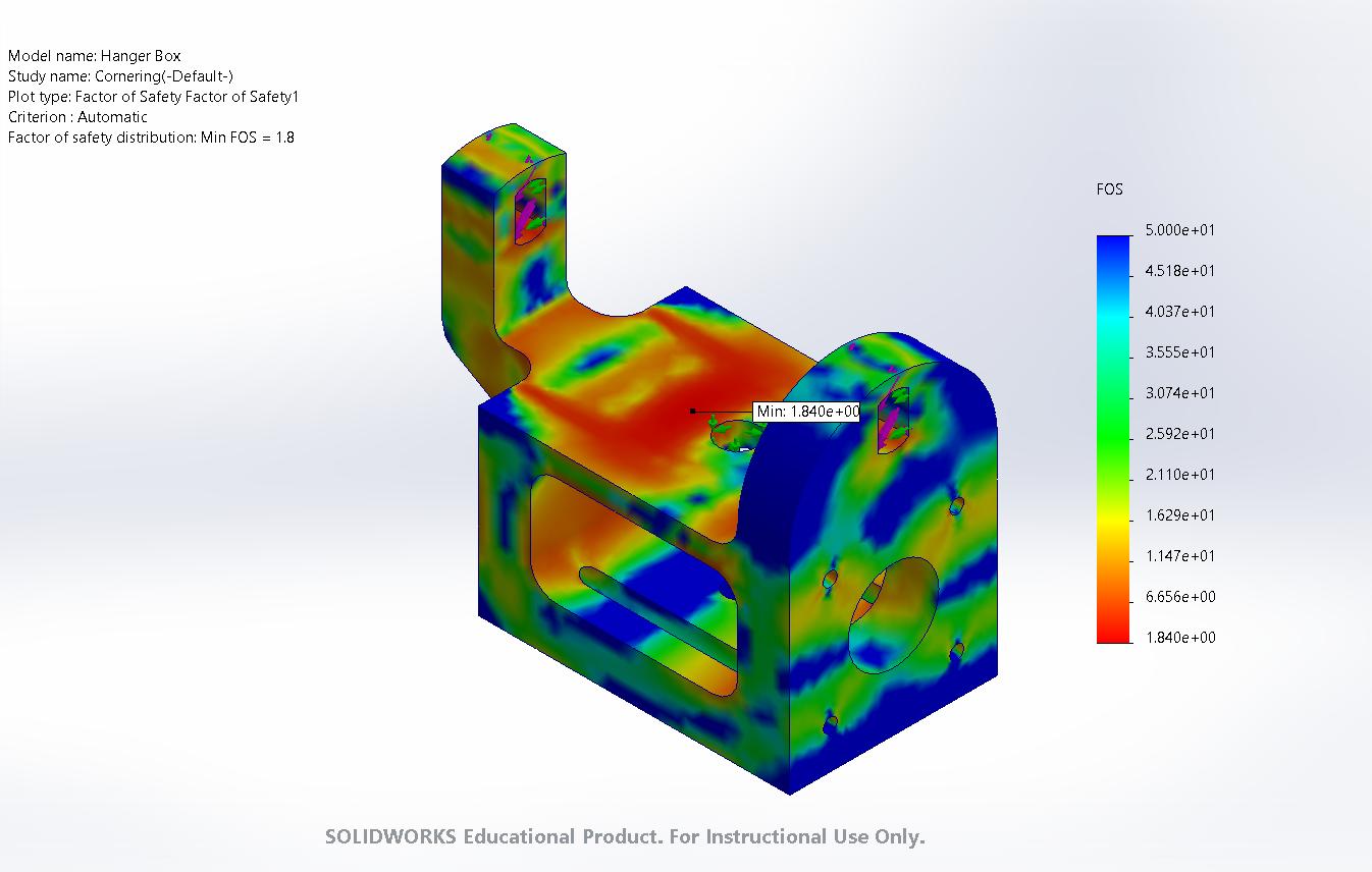 Theshaftisadeadaxle.Itonlysupportsthemechanismsrotatingaroundit.Assuchitcreates anoptimalsecuringlocationforthemountingandhousingofthemotorandhanger.Thishousing isneutral.Itdoesnotspinorrotatewitheitherhangerorboard.Withallofthisinmind,wewent throughafewdesigniterationsbeforelandingonthedesignwefabricatedandusedfortesting. Ratherthanmakingasleekdesign,weoptedforathickerandmorerobustlookfortesting.We performedFiniteElementAnalysis(FEA)onalloftheload-bearingcomponents,however,this systemisstillnotfullycharacterized,andassuch,weneededadesignthatwasover-designedto providetheleastlikelihoodofbreaking.Weperformedastaticanalysiswherea200-poundperson putalloftheirweightononeofthetrucks,aswellassimulatingtheobliqueloadsexperienced duringaturn.TheresultscanbeseeninFigures 24 and 25 ofAppendix C.3.