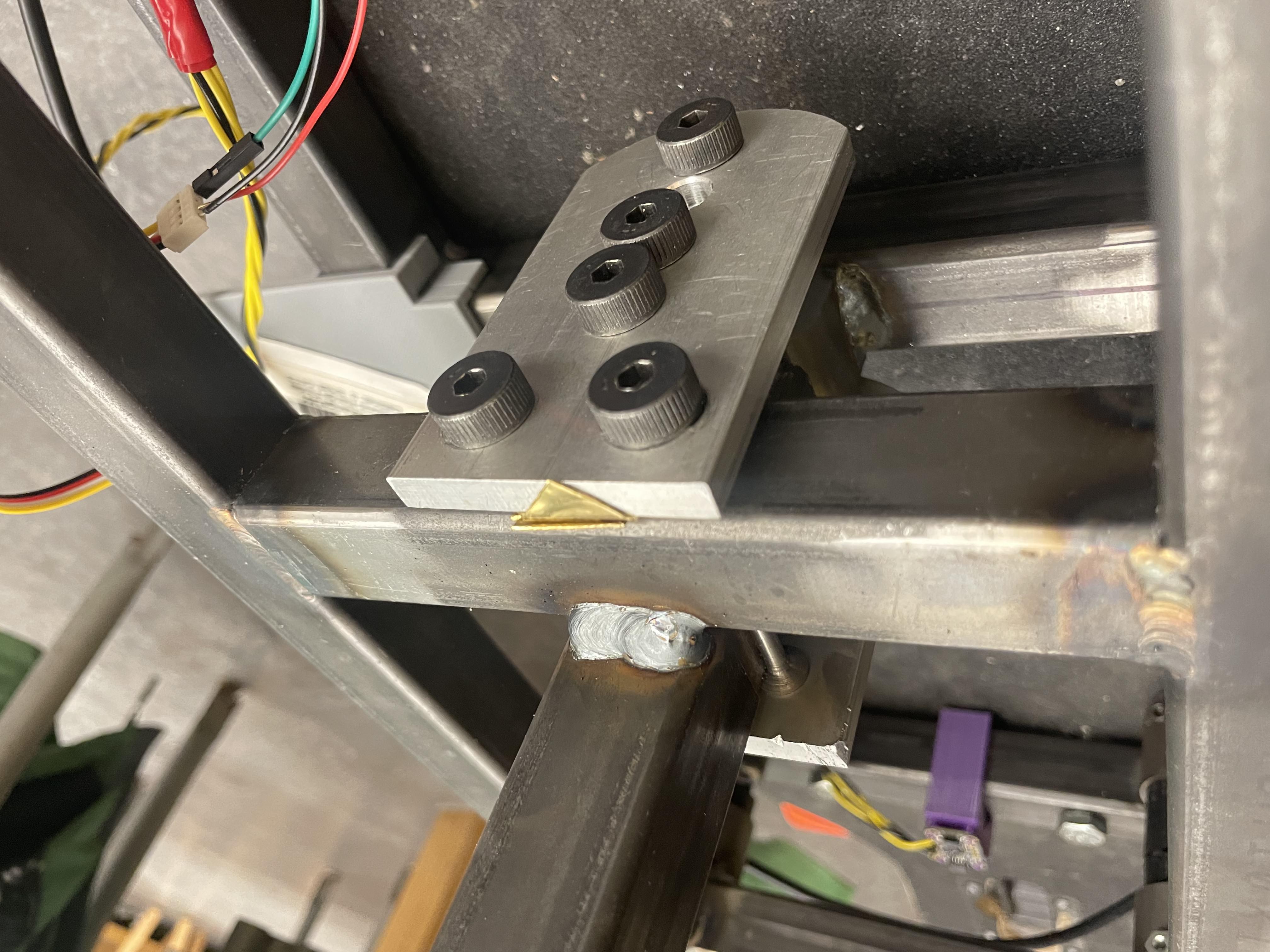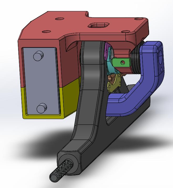 Thesensorusedtomeasurehangerangleisthe AS5600PositionSensor fromams-OSRAM.It isachipthatisabletodetectvariationsinamagneticfieldgeneratedbyasmallmagnetattached toarotaryelement.Inourcase,thiswasasmallmagnetepoxiedtothebackoftheshaftofthe motorusedtorotatethetruckhangers.Thecustommountandmagnetlocationcanbeseenin figure 9.