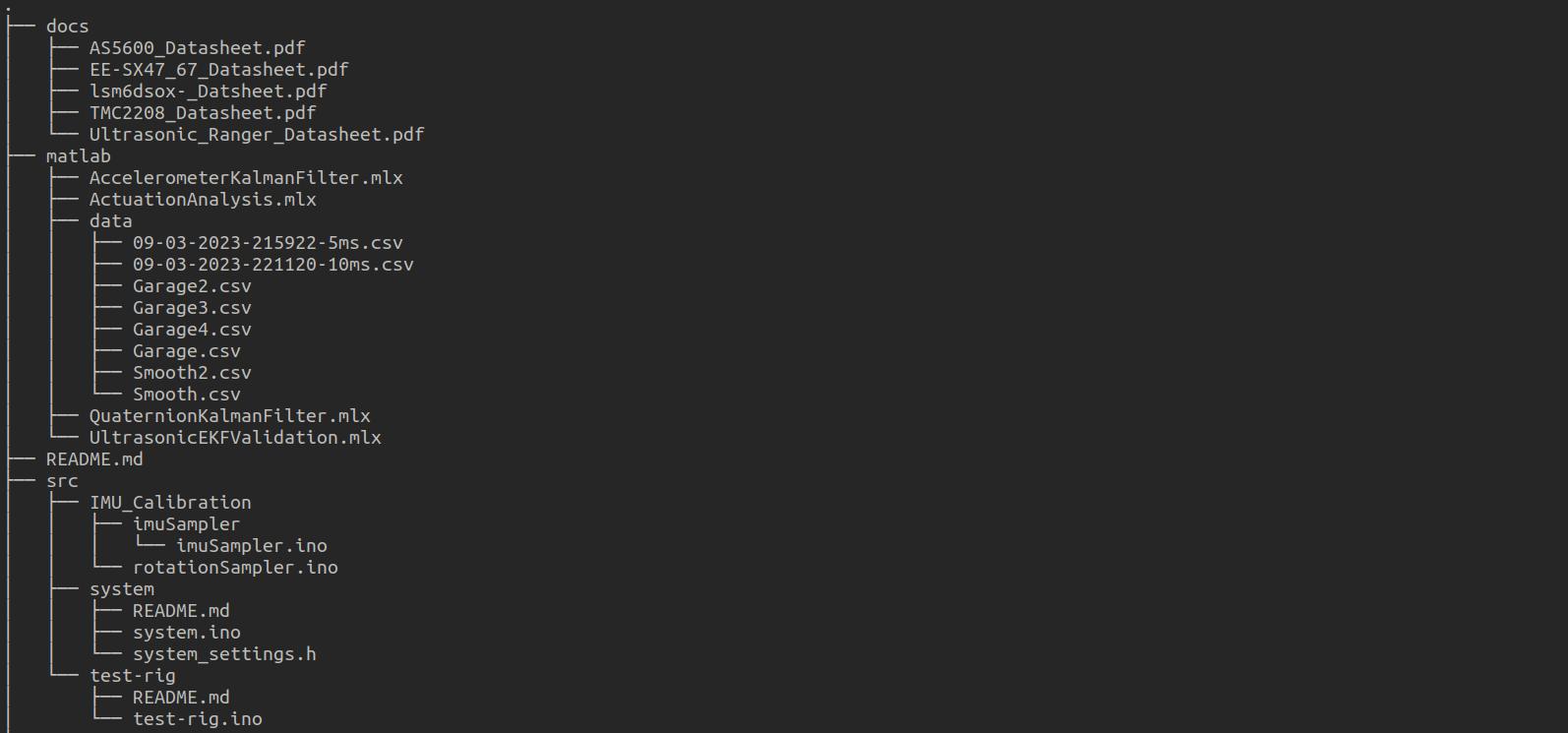 Ascanbeseen,whenthegroundgetsrougher,theperformanceoftheEKFalsogoesdown. Thatsaid,thefilter’strackingerrorremainsclosetothetruevalueregardlessofthesurface.With thisresult,wemovedforwardwithimplementingtheEKFontheTeensy.Operatingatafrequency of240Hz,theboardtakesmeasurementsandrunsthemthroughtheEKFtoestimatetheboard’s