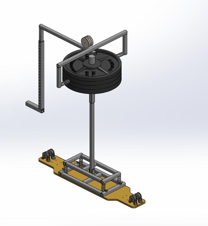 Ourapproachwasasfollows:Toachievethespeedsnecessaryforeffectivetesting,acarmust beused.Assuch,theremustbeacomponentofthetestingapparatusthatcanbesecuredtoacar toguideittothesespeeds.However,rigidmountingwouldresultinskeweddataasthearmwould involuntarilypreventtheboardfromoscillatingnaturally.Wemustcreateacar-mountedsystem thatcanonlylightlyguidethetestingrigtostayupright.Thisprovidesagreatpointofcontact forthe”abs”.Wecreatetwoseparatecomponents,onethatattachestoacarandanotherthat attachestoaboard.Theboardattachmentwillholdthebody,orthemainweight,thatactsas theinvertedpendulumandfunctionsasthe”ankle”,whilethecarattachmentwillholdthebody uprightviasurgicaltubingtoactastheabs.