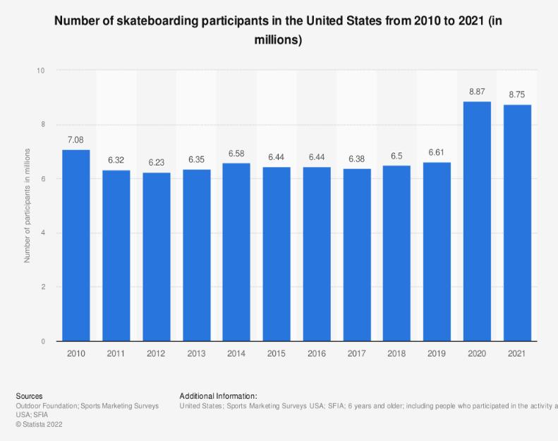 Asobservedinthetwographsabove,therehasbeenanuptrendinthevalueoftheskateboard marketintheUS.Likewise,thenumberofskateboardusersinthepastdecadehasremained relativelystable,witharecentuptickinridersinthepasttwoyears.Thisshowsthatthereisan availableandgrowingmarketthatLSDcantapinto.