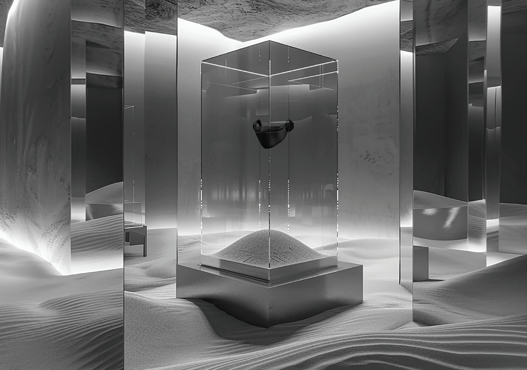 Para la estética, optamos por el binómio “Desert Lab” como el escenario para nuestro relato (un laboratorio futurista que crea los perfumes en el desierto de AlUla) pero también como una problemática y una solución, una descripción al olor de nuestro perfume.