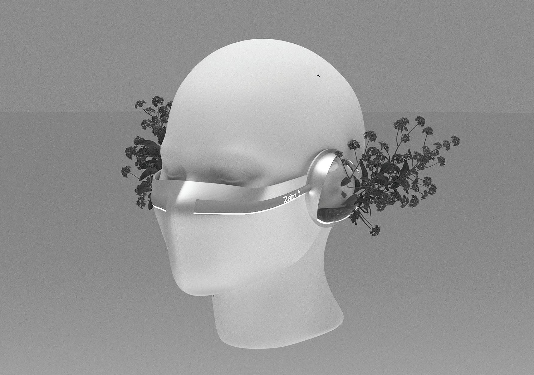 la humanidad ha agotado todos sus recursos hasta llegar casi a su extinción. El mal uso de la tecnología ha sido hasta ahora la destrucción y al mismo tiempo será la salvación. En paralelo, el clima también ha llegado hasta extremos casi inhabitables, donde el calor y la desertización han tintado la vida de colores naranjas y marrones, con el único azul visto en el cielo. Los grandes países han invertido cantidades enormes en tecnología e instalaciones que puedan preservar la poca naturaleza que ha podido sobrevivir, siendo ésta el bien más preciado, buscado y por lo tanto protegido. El clima árido y sin vegetación también ha establecido una vida falta de olores. Además, las sociedades han tenido que esconderse bajo la tierra a causa del calor extremo y han desarrollado técnicas para averiguar la ubicación de los sitios con ciertos grados de humedad, haciendo posible un hipotético cultivo. SIBA nace como la nueva potencia tecnológica decidida a establecer un puente entre el humano y la escasa vegetación. El laboratorio árabe se establece como la extensión necesaria para recuperar esos destellos de placer que un día no supimos valorar. En un triste mundo post-catástrofe donde el humano ha perdido acceso a la naturaleza, el laboratorio soluciona esta desconexión con una extensión que permitirá volver a empezar a recordar el contacto con nuestra parte más pura y natural. El cultivo de la vida en su esencia más pura, una pequeña semilla de esperanza para poder ver crecer un nuevo vínculo con lo que un día no supieron valorar nuestros más básicos sentidos. Una memoria terrenal que define aquello que fuimos y ahora valoramos. En este contexto climático extremo, los individuos necesitan protección para poder salir al exterior. NECESITAN DE UNA MÁSCARA QUE LES PROTEJA DE LA CONTAMINACIÓN Y ZAHR NACE COMO UN DESTELLO DE PLACER EN UN CONTEXTO CATASTRÓFICO, SIN VEGETACIÓN Y SIN OLORES. El día a día no se entiende sin vestidos que protejan de la contaminación y el sol abrasador. En una distopía donde la naturaleza resentida nos ha cerrado las puertas de sus beneficios, SIBA expone una puerta de placer y expiación tras años de condena. El proyecto Zahr permitirá a los usuarios recordar lo fascinante que es oler una fragancia tras años de condena sensorial.