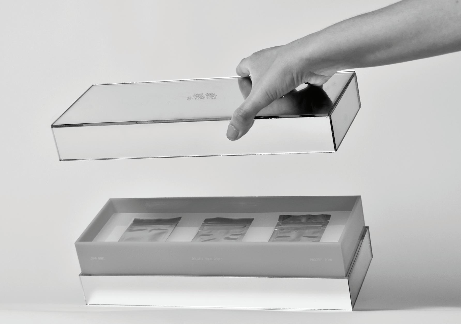 El perfume, para ser experimentado de nuevo, tiene que ser recargado con nuevas semillas, las cuales se venden por separado (ZAHR 0003), en esta caja que al abrirse ilumina la cara del usuario con luces LED, y permite una recarga más.