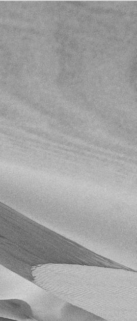 Para la identidad visual del perfume optamos por crear un imaginario de texturas, lugares, elementos, que nos recordaran a la escencia del perfume y que construyeran el mundo físico de AlUla en 2130. Para esto, utilizamos una edición texturizada y de duotono alternando entre los cuatro colores de nuestra paleta: blanco, negro, naranja, y gris.