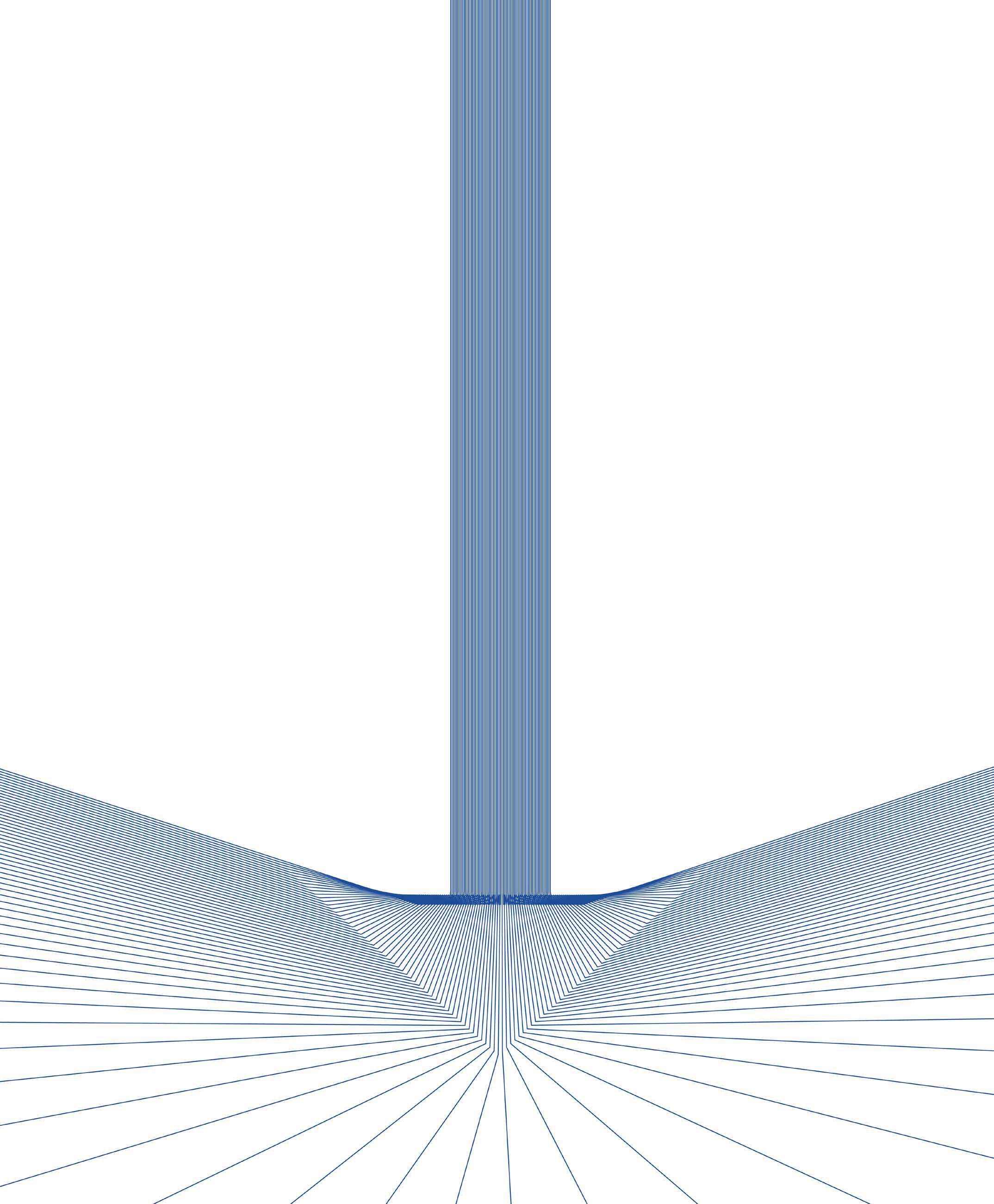 A su vez, se observó que esta geometría de la instalación que bajaba hacia un mismo punto creaba un efecto “interesante” para los espectadores en el espacio, el cual se identificó como un “punto de gravedad”, ya que alrededor de este los visitantes caminaban, contemplaban, rotaban y experimentaban en mayor medida la pieza.