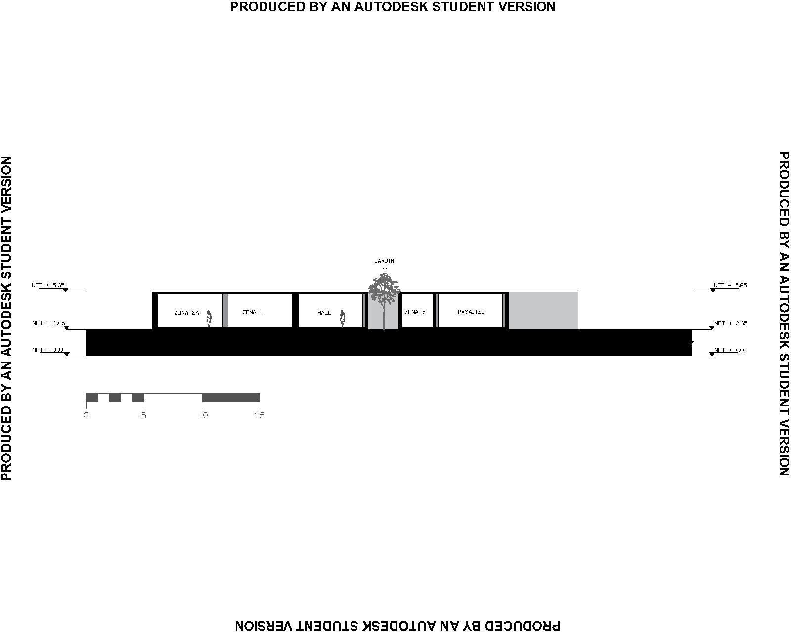 LA CIRCULACIÓN SE ENCUENTRA A PRINCIPIOS DEL NIVEL CERO CON DESNIVELES DE 1 A 2 65 METROS COMO SE PUEDE APRECIAREN EL CORTE, DANDO A JERARQUIZAR EL INGRESO CON DOBLE ALTURA