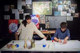 Jimena Ríos y María Schmukler, estudiantes de ambas facultades y personas privadas de libertad. Imágenes de proyecto, proceso y de presentación en residencia en espacio SUBTE Centro de Exposiciones de Montevideo. Registros de varios autores.