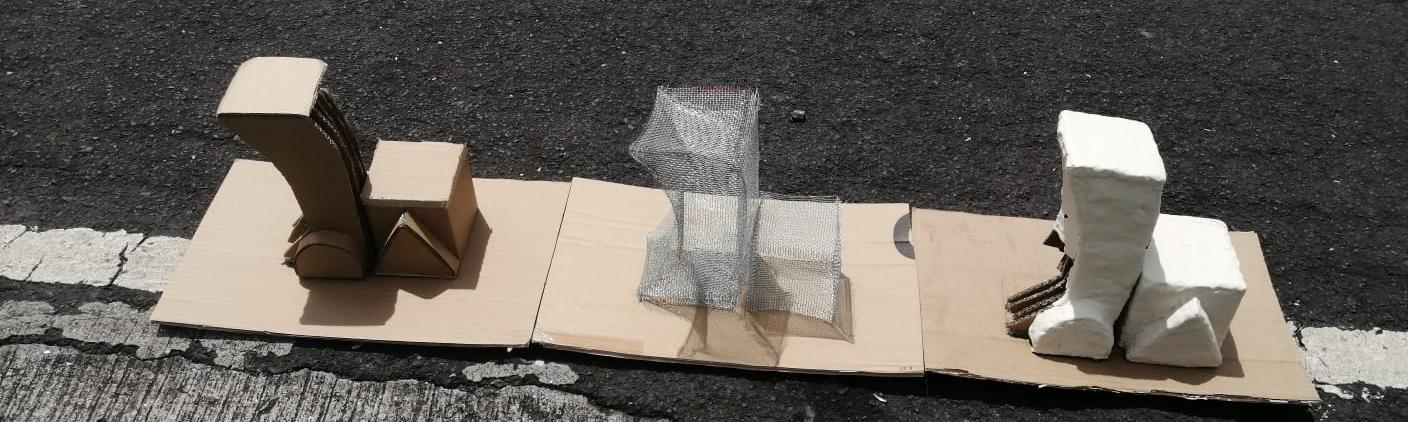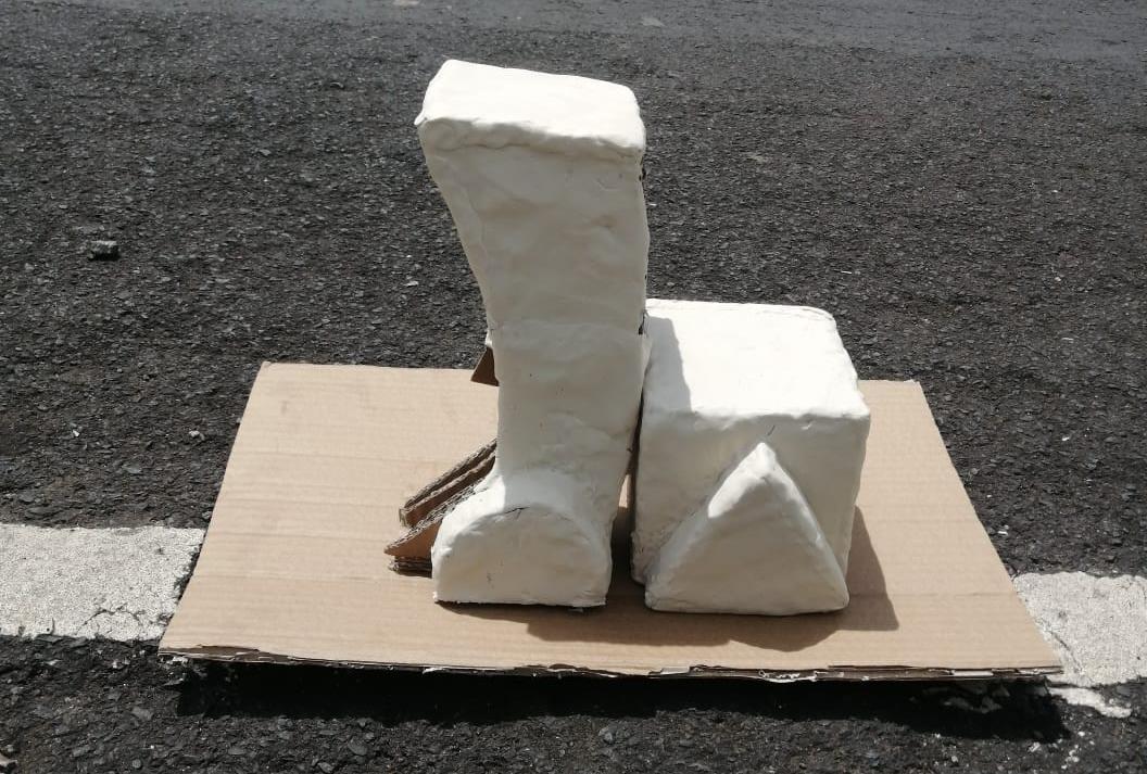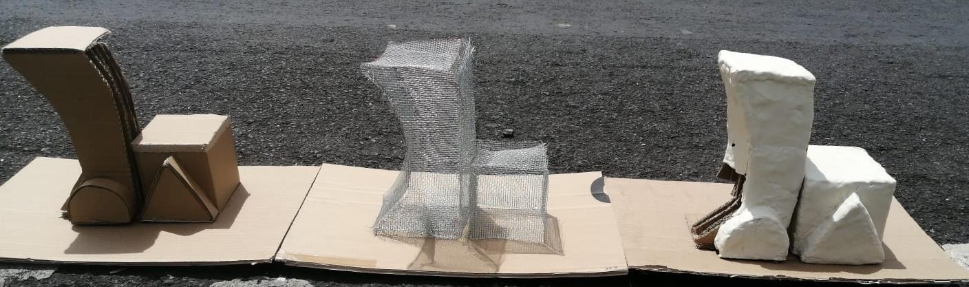 La combinación de cartón, alambre y masilla permitió experimentar con propiedades físicas y expresivas. El cartón aportó rigidez y superficie, el alambre flexibilidad y estructura, mientras que la masilla actuó como unificador y texturizador, resaltando cómo los materiales trabajan juntos para dar forma y estabilidad al diseño.