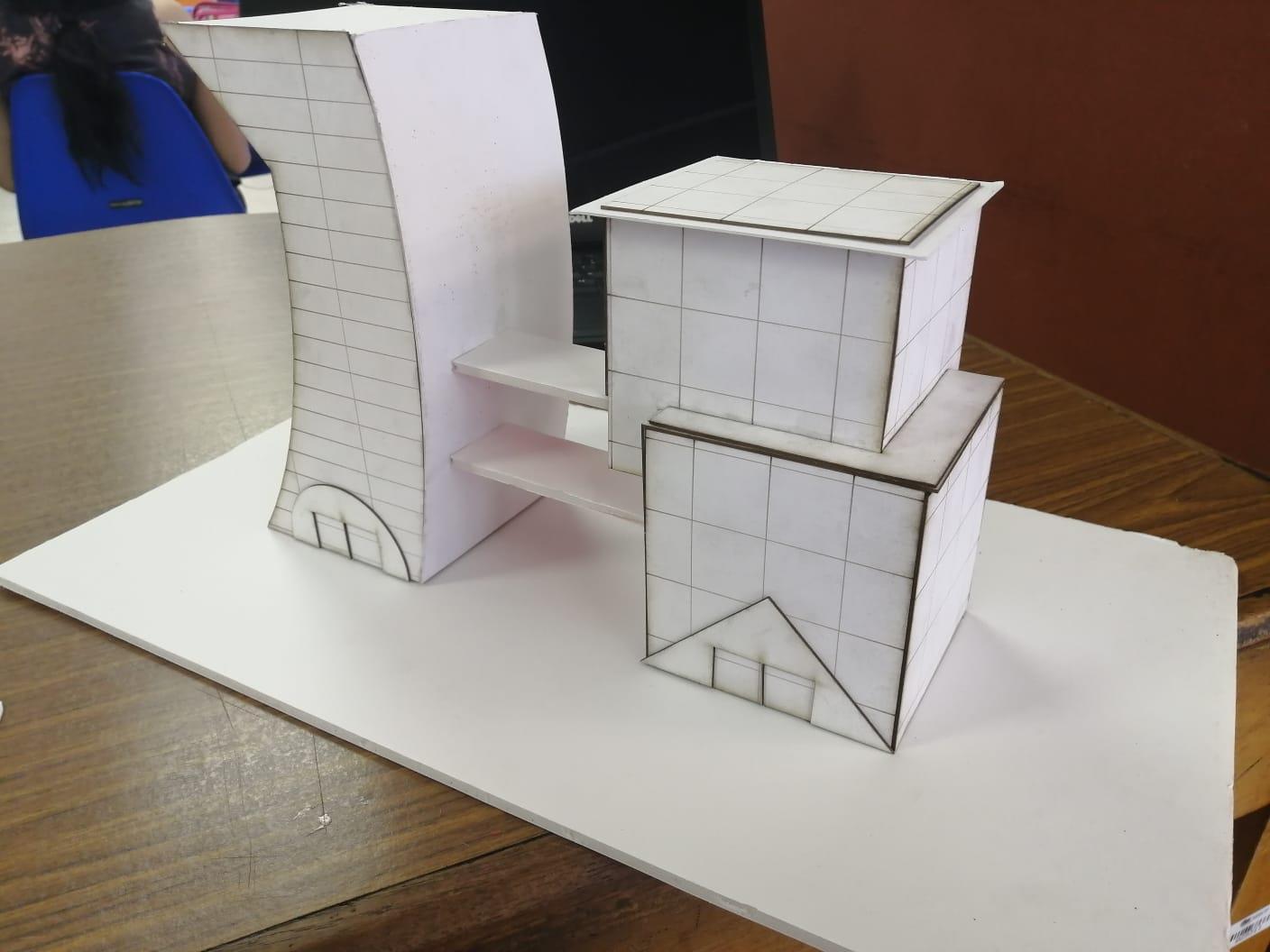 El trabajo permitió experimentar con la interacción entre materiales (cartón, alambre y masilla) y formas geométricas básicas, destacando cómo estas herramientas posibilitan la traducción de ideas abstractas en un modelo tangible. La combinación de estos materiales permitió flexibilidad y rigidez en puntos estratégicos del diseño. Comprensión de las circulaciones: La exploración de las circulaciones en la maqueta ayudó a identificar cómo las figuras geométricas y su disposición afectan el flujo de movimiento dentro del espacio. Se logró entender cómo los recorridos pueden dirigir la experiencia del usuario, jerarquizar espacios y crear conexiones fluidas entre áreas. Relación entre geometría y espacio: Las figuras geométricas utilizadas no solo funcionaron como elementos visuales, sino también como moduladores del espacio. Este ejercicio evidenció cómo los volúmenes básicos (cubos, cilindros, prismas) pueden ser adaptados y manipulados para generar composiciones equilibradas y dinámicas. Reflexión sobre el aprendizaje: Este proyecto sirvió como una base para analizar las posibilidades compositivas que se pueden lograr a partir de elementos simples. Además, permitió desarrollar habilidades manuales y fortalecer la percepción espacial, elementos fundamentales en el proceso de diseño arquitectónico. Proyección hacia futuros proyectos: El ejercicio invita a reflexionar sobre la importancia de la experimentación con materiales y formas en las etapas iniciales de diseño. Este enfoque puede ser escalado y adaptado en proyectos más complejos, donde la composición, las circulaciones, y los materiales juegan un papel esencial en la experiencia arquitectónica.